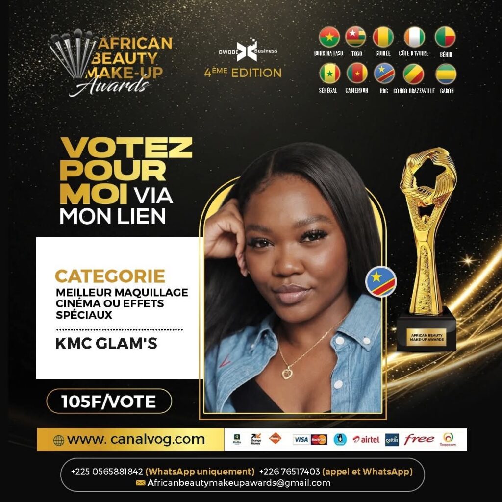 Sa nomination aux African Beauty Make-up Awards vient récompenser la qualité de son travail et son engagement dans la promotion des métiers de la beauté en Afrique. Elle met également en lumière l’expertise congolaise dans un secteur en pleine expansion sur le continent.