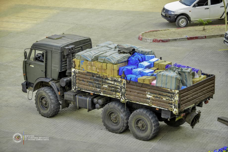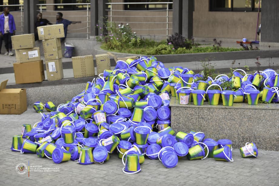 En l’absence du Vice-Premier ministre de la Défense nationale et Anciens Combattants, Me Guy Kabombo Muadiamvita, qui participe au 45e sommet de la SADC à Madagascar, le Directeur de Cabinet , le lieutenant général retraité Rombault Mbuayama NSIONA, a réceptioné ce lot important des kits sanitaires destiné aux militaires engagés au front, aux blessés de guerre ainsi qu’aux dépendants des militairers vivant aux camps de déplacés.
