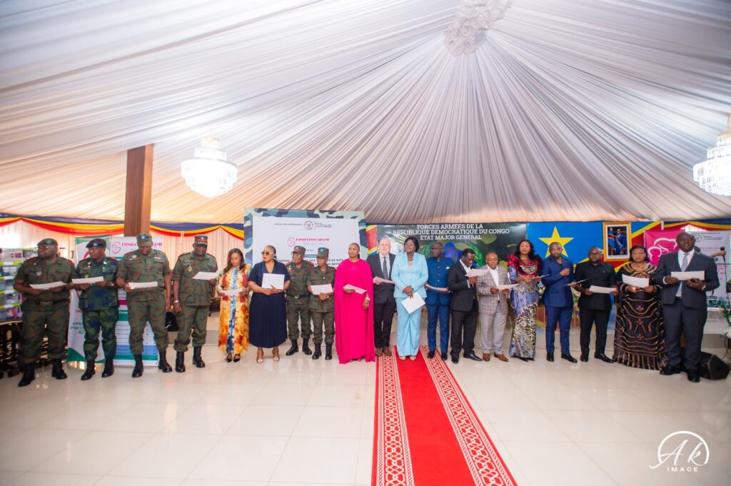 Le fonds des nations unies pour la population UNFPA-RDC, Partenaire de la fondation Grâce à ma Mère, avec l’appui financier du Fonds Norvégien, dont a rappelé la nécessité d’une formation sur la santé sexuelle et reproductive pour les jeunes filles, dépendantes des militaires. En cette période où la RDC subit une guerre d’agression et que sa partie Est est sous occupation illégale, il est important de soutenir les FARDC au travers leurs dépendantes. C’est pour cette raison que L’UNFPA-RDC a accepté de soutenir cette cause porté par la Fondation GRAME, en offrant quelques kits métiers de réinsertion socio-économique aux dépendantes des militaires, mais également un kit sanitaire pour l’hygiène menstruelle et quelques kits contraceptifs.