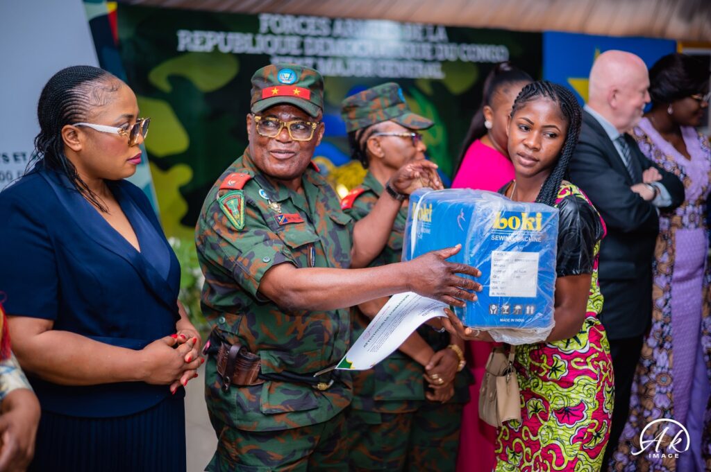 Kinshasa 31 mai 2025 – C’est dans une ambiance solennelle et pleine d’émotions que s’est tenue au chapiteau de l’État-Major Général des FARDC, la cérémonie de clôture de la 7e session de formation professionnelle en coupe et couture, esthétique générale, couplée à l’éducation financière, la santé sexuelle et reproductive en faveur de 100 femmes et jeunes filles dépendantes des Forces armées de la République démocratique du Congo.